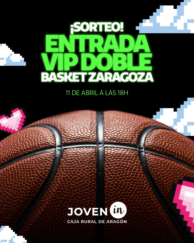 Para participar en el sorteo en Instagram de 1 pack de 2 entradas VIP para ver el partido del equipo masculino de Basket Zaragoza el 11 de abril de 2026, los clientes entre 16 y 30 años deben: